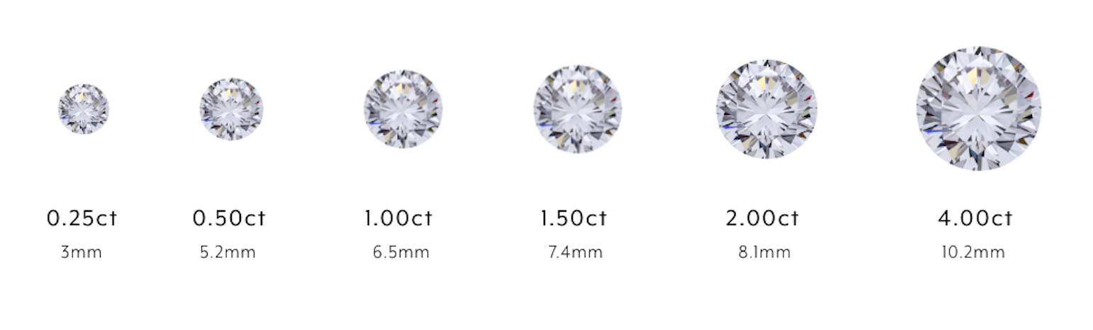 People usually get confused between Carat and Size. Carat refers to the weight of a diamond, while the size refers to the measurement of the stone in millimetres.